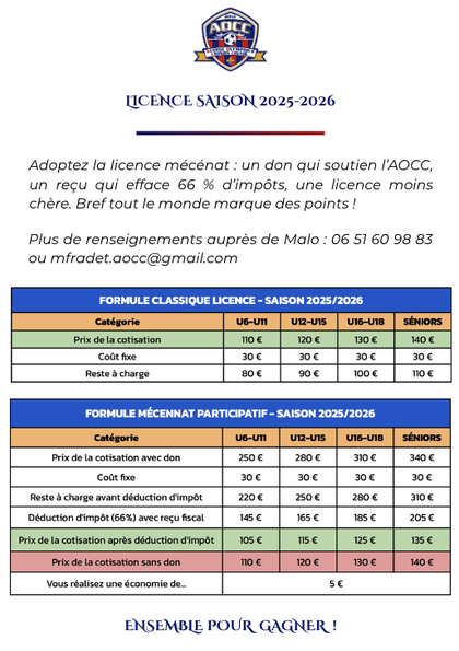 Les frais de gestion de licence facturés par la fédération (ligue/district) seront déduits du remboursement.