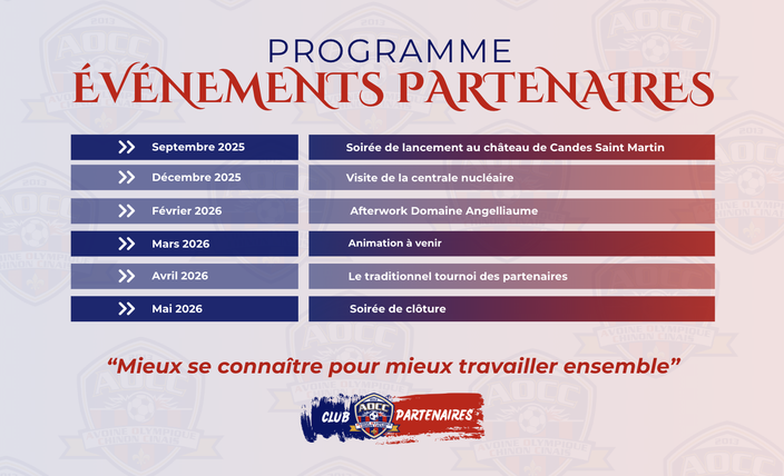 Cette saison, notre club est fier de pouvoir compter sur le soutien de ses partenaires à travers 6 événements dédiés tout au long de l’année. Ces rendez-vous sont l’occasion de renforcer nos liens, de valoriser nos collaborations et de partager des moments conviviaux.
