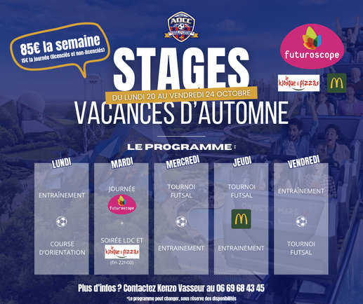 Le club propose des stages multi-activités pour vos enfants qu'ils soient licenciés ou non. Le but est de proposer différentes activités sur les périodes de vacances scolaires et s'amuser à un prix abordable.